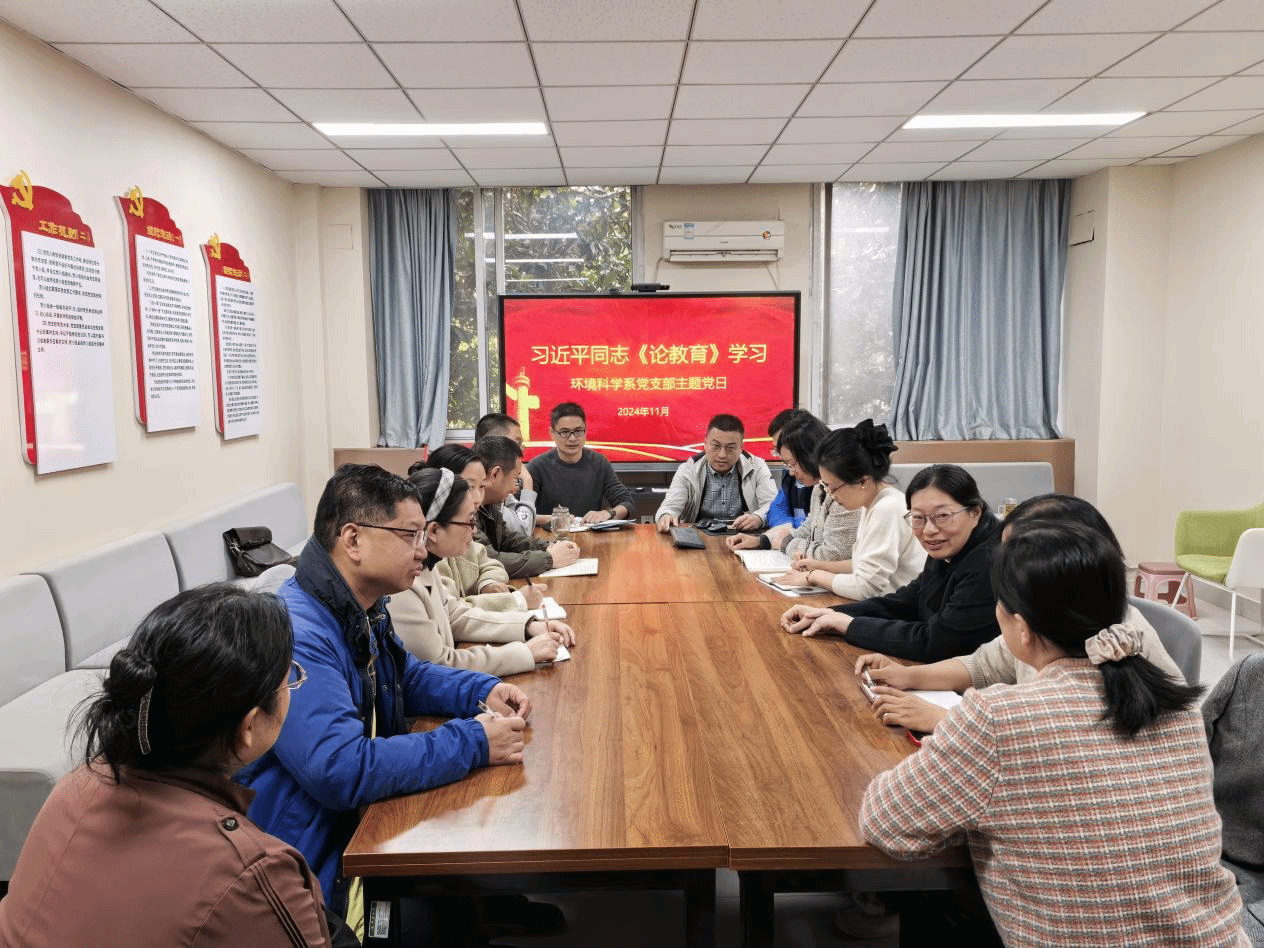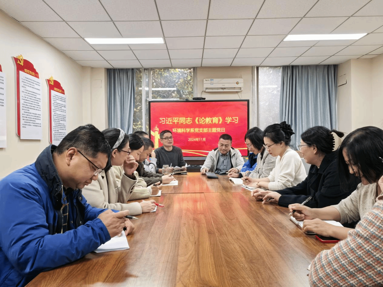 11月7日,永利集团官网环境科学系党支部在地学楼二楼党支部书记活动室开展“习近平同志《论教育》学习”主题党日活动。活动由党支部书记李旭辉主持,支部全体党员参加。