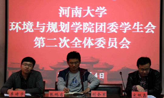 3月4日中午,环境与规划学院2015届团委学生会第二次全体委员会于学院二楼报告厅举行。团委负责老师张鹏岩、宋根鑫、李靖宇及学生会成员与会。此次会议由学生会团委副书记万镕今主持。
