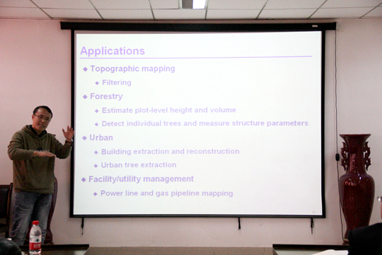 3月22日上午,美国环境系统研究所高级软件产品工程师常捷应邀在环境与规划学院二楼报告厅做以激光雷达数据及地物信息提取为题的学术报告。